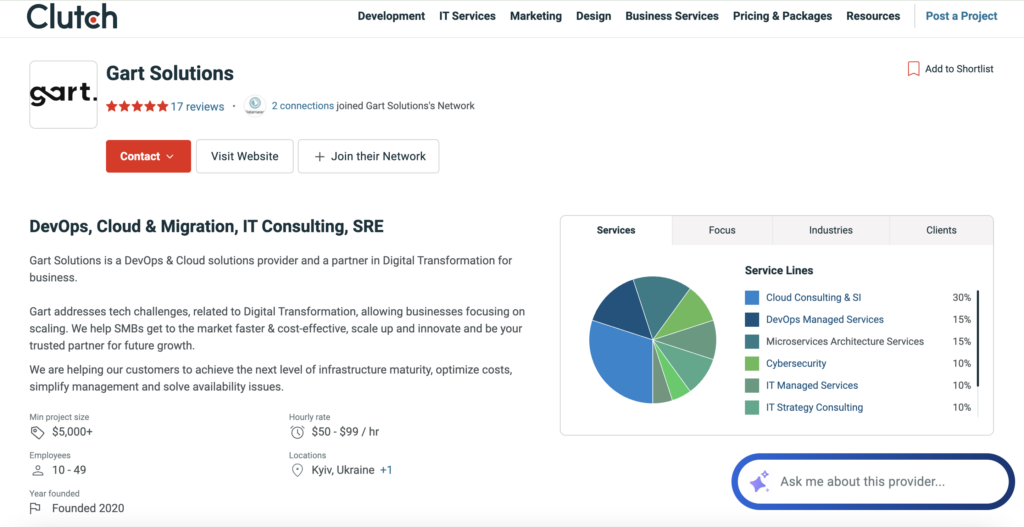 Gart Solutions stands out because of its DevOps-centric approach and ability to modernize infrastructure while reducing operational burden and cloud waste. They act as a technical extension of your product team — not a generic outsourced vendor.