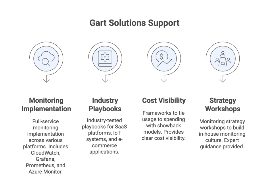 Gart Solutions integrated AWS CloudWatch for data collection with Grafana for visualization. But the real win? They built dashboards that showed cost and performance side-by-side.